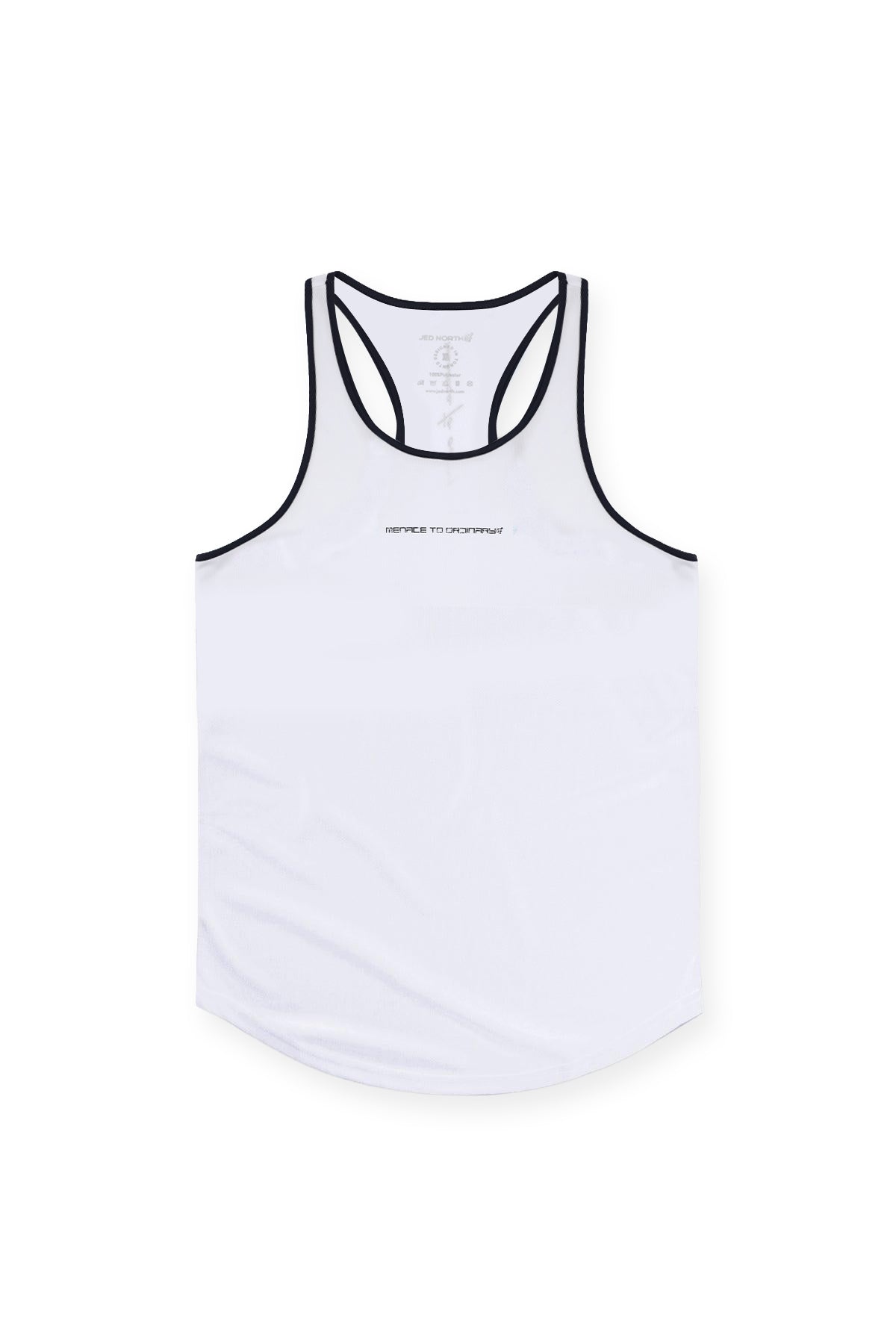 Fast-Dry Bodybuilding Workout Stringer - White w/ Navy Menace