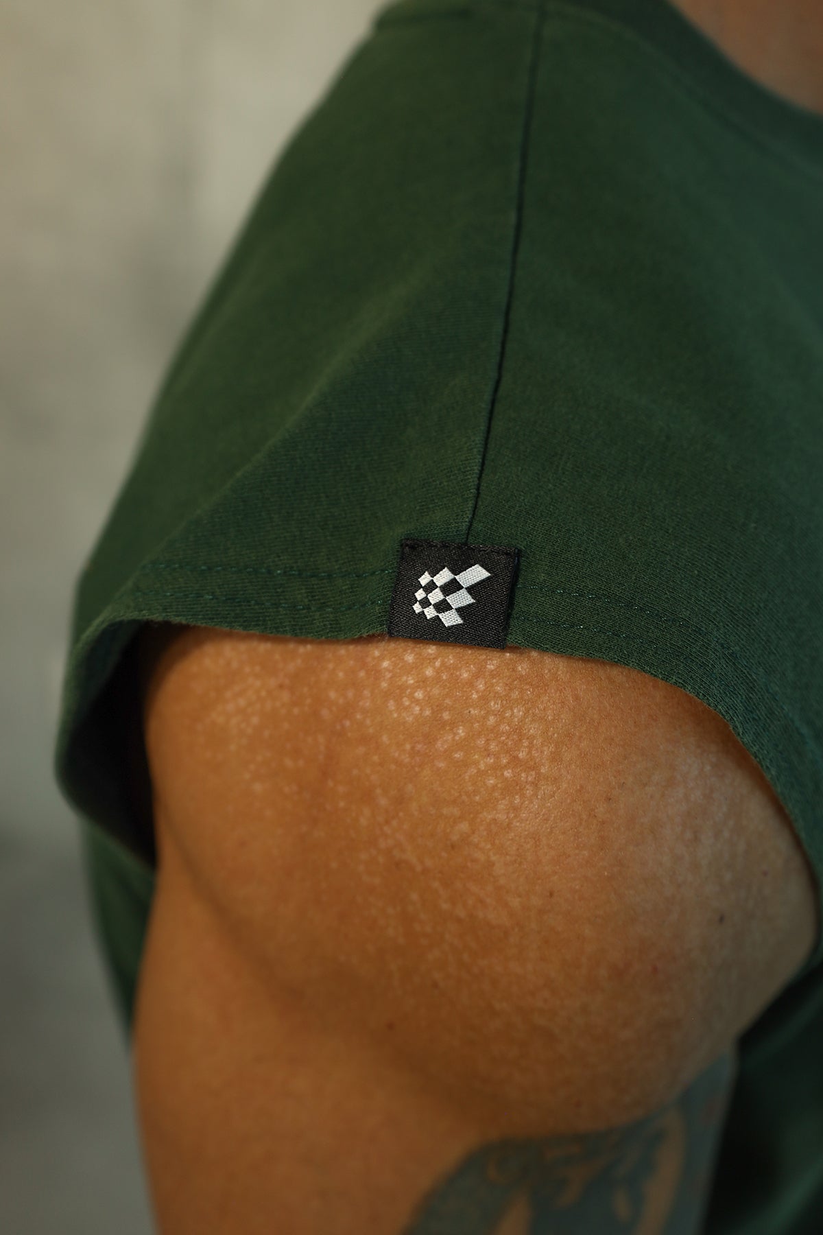 • Stitched logo under left arm sleeve and back distressed classic Jed North logo