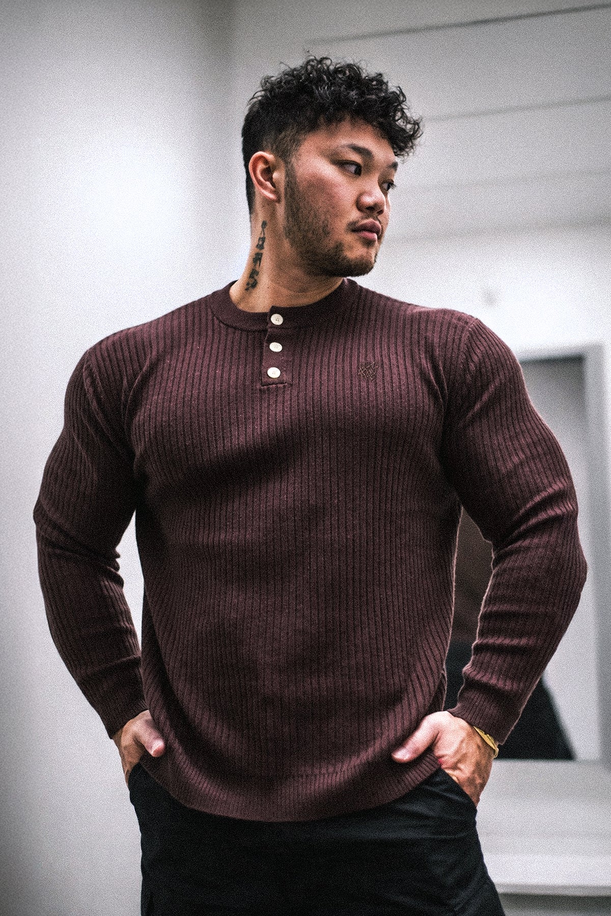 • Classic 3-Button Henley Design, perfect for cooler weather.