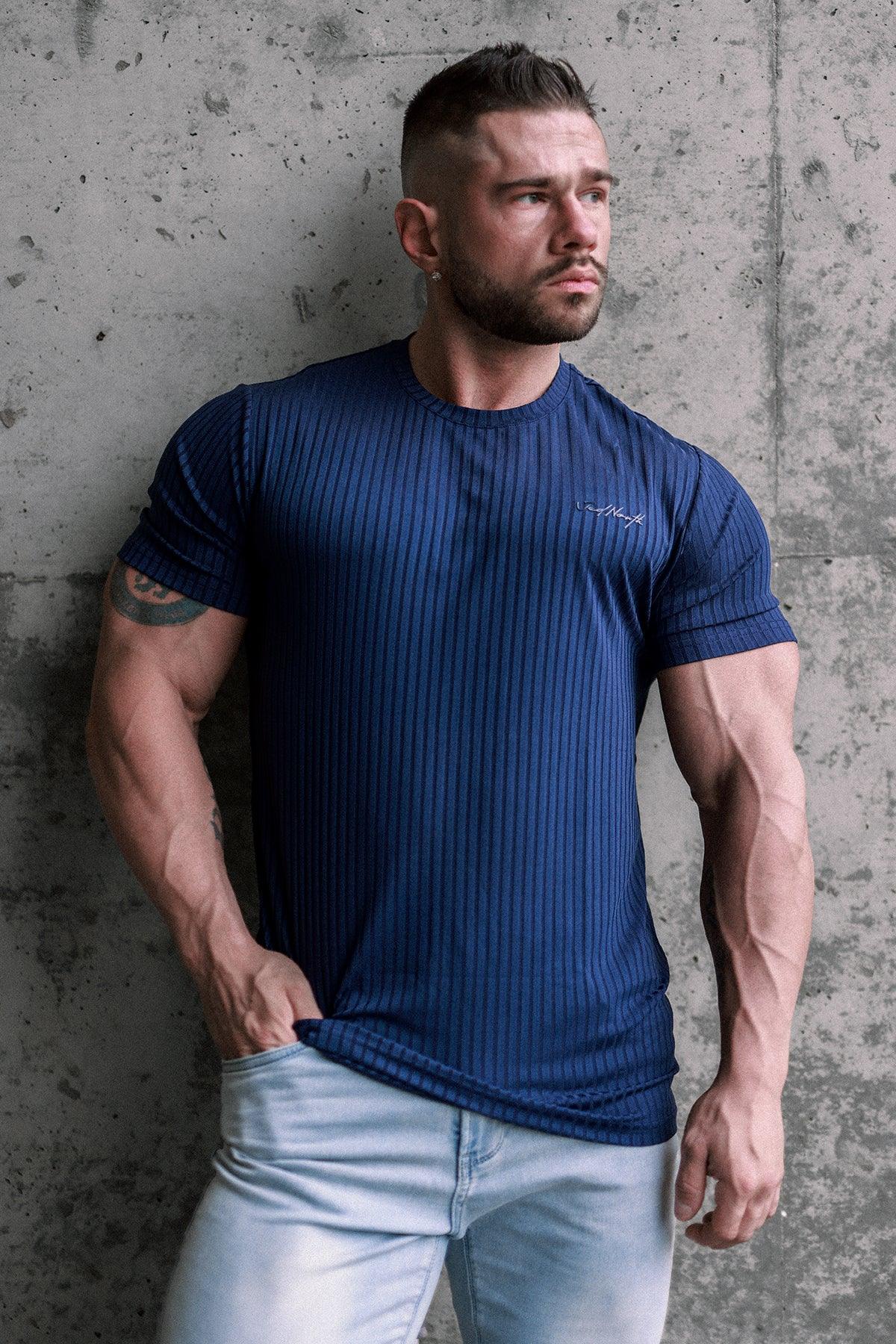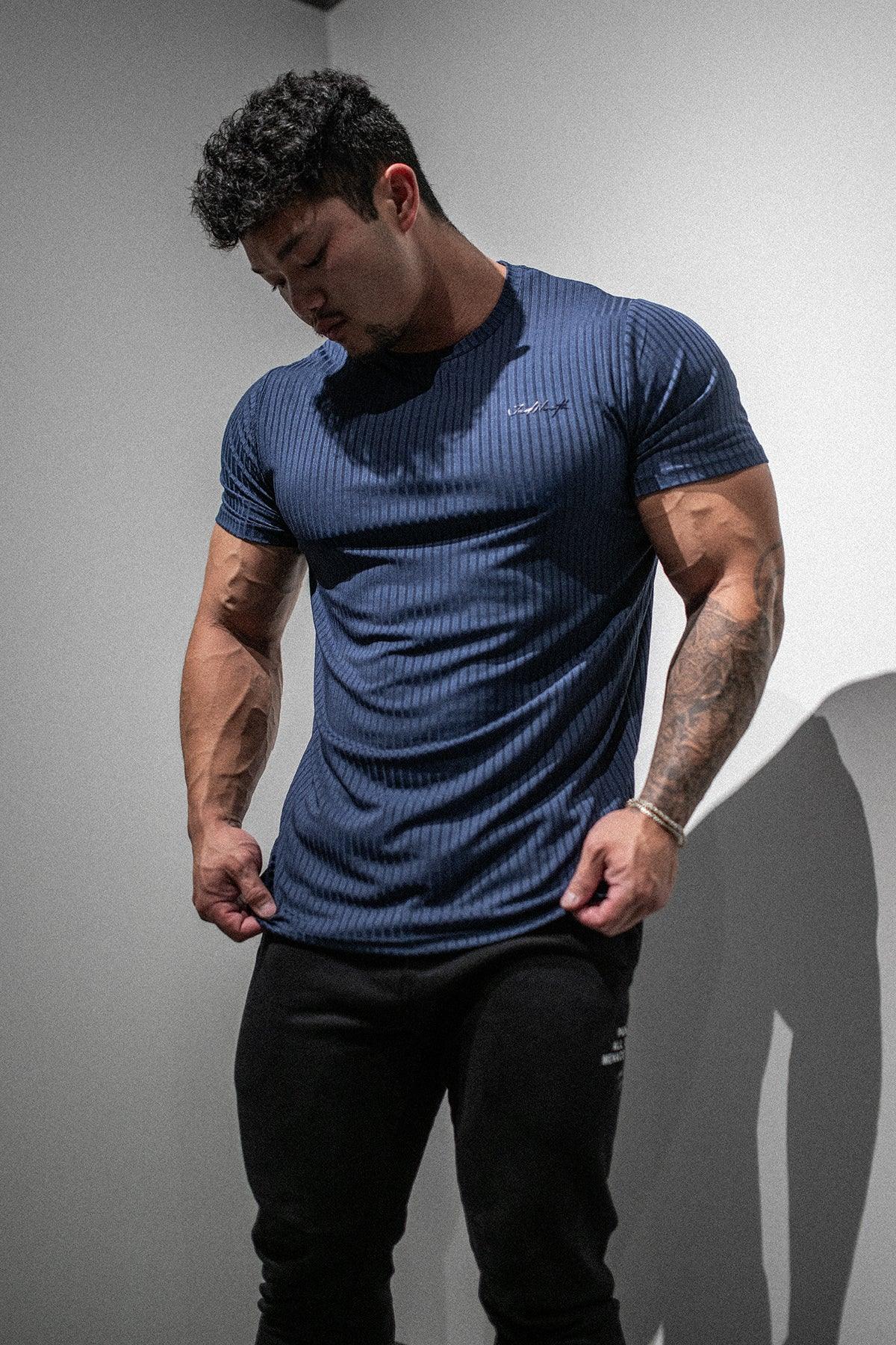 Ribbed Muscle-Fit T-Shirt - Indigo L / Blue